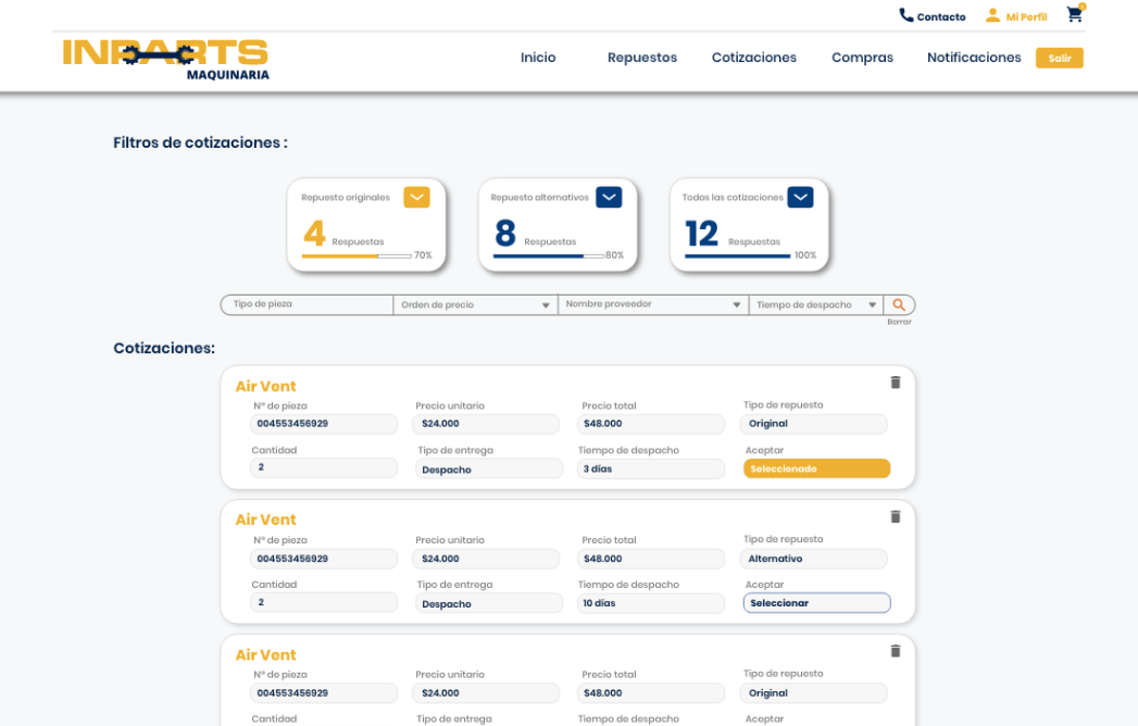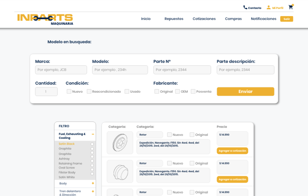 El repuesto que necesitas y agrégalo a tu carrito de cotización